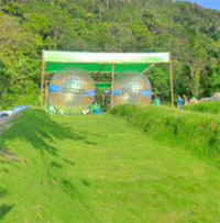 A Roller Ball or Zorb as it is called in other parts of the world is an especially plastic sphere which can safely descend a hill with two passengers floating on the water inside.